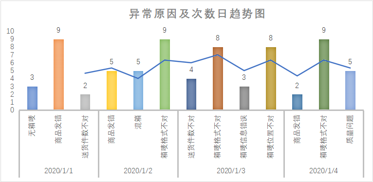 收貨是貨物進(jìn)入倉(cāng)庫(kù)的第一環(huán)節(jié),因此做好收貨異常管理尤其重要。減少收貨異常、能夠提高貨物的入庫(kù)效率,同時(shí)降低收貨異常問(wèn)題對(duì)后續(xù)庫(kù)內(nèi)其他作業(yè)流程的影響。 做好收貨異常管理,首先要學(xué)會(huì)對(duì)異常原因進(jìn)行分類分析,常見的異常有以下四種: 1、送貨件數(shù)差異有多件、少件、錯(cuò)件三種情況。 2、箱嘜問(wèn)題多見為:無(wú)箱嘜、箱嘜不規(guī)范、箱嘜信息錯(cuò)誤、箱嘜位置不對(duì)等。 3、裝箱差異:一方面是裝箱數(shù)量的差異(多貨或少貨),另一方面是沒(méi)有裝箱單或裝箱單與實(shí)際內(nèi)箱商品不一致。 4、質(zhì)量問(wèn)題:先判斷是批量質(zhì)量問(wèn)題還是個(gè)別商品質(zhì)量問(wèn)題;而質(zhì)量問(wèn)題的原因跟產(chǎn)品類型息息相關(guān)。 例如外表磨損、臟污;電器類商品不通電、服裝類商品開線、功能型商品功能不健全等等。 完善的異常原因分析,離不開異常問(wèn)題的統(tǒng)計(jì);問(wèn)題統(tǒng)計(jì)看似是一項(xiàng)繁瑣枯燥的工作,但其背后的統(tǒng)計(jì)維度以及分析邏輯對(duì)異常管理意義重大。 下面跟大家分一下常用的幾種收貨異常統(tǒng)計(jì)方式: 1.收貨差異類型統(tǒng)計(jì) 針對(duì)件數(shù)差異、箱嘜差異、裝箱差異、質(zhì)量差異制定的《收貨差異統(tǒng)計(jì)表》,明確記錄每一項(xiàng)差異明細(xì)。 2.收貨異常數(shù)據(jù)日趨圖 對(duì)比每日的收貨件數(shù)、異常件數(shù)及異常次數(shù),作為倉(cāng)庫(kù)管理者的管理類圖表之一,快速掌握每日收貨異常情況,并關(guān)注異常問(wèn)題是否逐日改善。 3.異常原因及次數(shù)日趨勢(shì)圖 此表可以直接反應(yīng)出異常原因的占比情況,有利于倉(cāng)庫(kù)針對(duì)性的做出改善策略,并可以直觀跟蹤改善措施執(zhí)行后,對(duì)應(yīng)的異常問(wèn)題是否有所改觀。 4.重點(diǎn)供應(yīng)商統(tǒng)計(jì) 針對(duì)供應(yīng)商出現(xiàn)的異常問(wèn)題次數(shù)進(jìn)行統(tǒng)計(jì),關(guān)注哪些供應(yīng)商經(jīng)常出現(xiàn)問(wèn)題,重點(diǎn)跟蹤改進(jìn)情況。 除了學(xué)會(huì)收貨異常問(wèn)題的統(tǒng)計(jì)及分類以外,更為關(guān)鍵的是異常改善策略的制定及實(shí)施。改善策略主抓以下兩個(gè)方向: 1.倉(cāng)庫(kù)內(nèi)部流程優(yōu)化:例如質(zhì)檢標(biāo)準(zhǔn)、箱嘜格式及張貼規(guī)范、裝箱標(biāo)準(zhǔn)、收貨流程等。 2.供應(yīng)商等級(jí)評(píng)估:倉(cāng)庫(kù)對(duì)供應(yīng)商的評(píng)估主要涉及送貨及時(shí)率、送貨準(zhǔn)確率、質(zhì)量合格率、以及緊急情況下的配合度。 掌握以上收貨異常的統(tǒng)計(jì)、分析、改善方法,可以有效界定供應(yīng)商到貨情況異常責(zé)任歸屬,對(duì)倉(cāng)庫(kù)的庫(kù)存管理上也能減少貨損、丟貨、少貨現(xiàn)場(chǎng)的發(fā)生;降低公司物流風(fēng)險(xiǎn)。 該文章在 2024/7/24 9:06:27 編輯過(guò) |