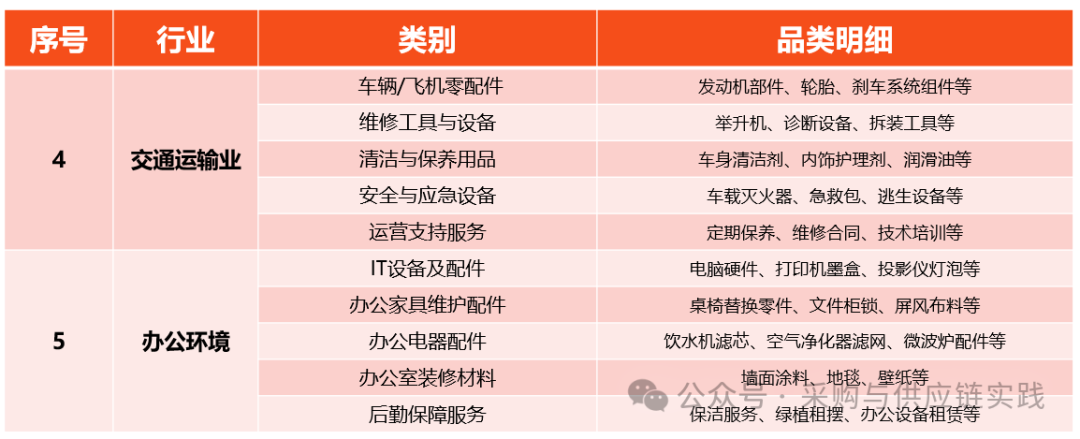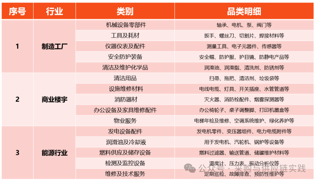 以下為MRO采購(gòu)場(chǎng)景中比較典型的細(xì)分品類(lèi)參考。