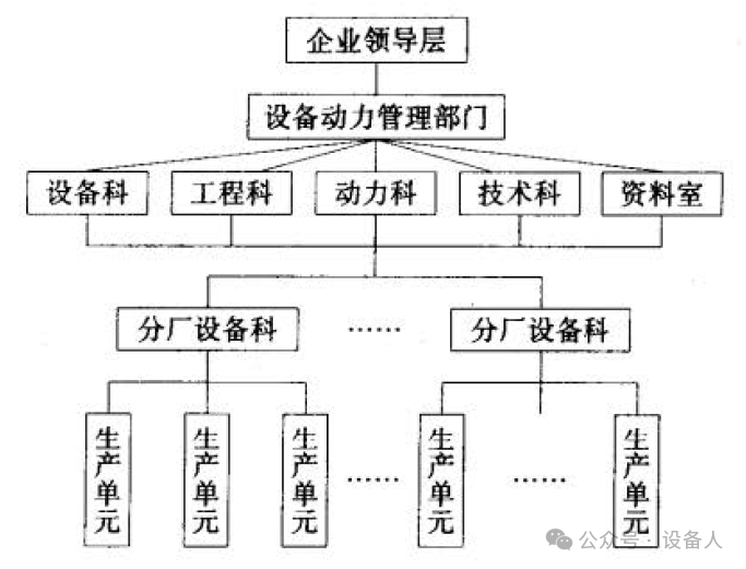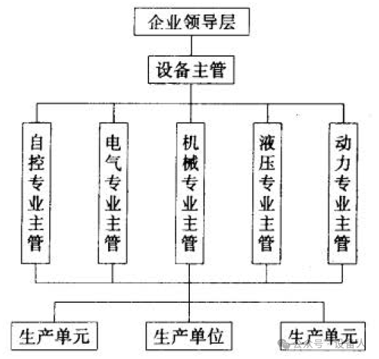 由此看來(lái),設(shè)備動(dòng)力管理部門在工業(yè)企業(yè)中,尤其是大型工業(yè)企業(yè)中是十分重要的部門之一。企業(yè)設(shè)備管理的職責(zé)如下: 1)負(fù)責(zé)企業(yè)的設(shè)備資產(chǎn)管理,使其保持安全、穩(wěn)定、正常、高效的運(yùn)轉(zhuǎn),以保證生產(chǎn)的需要。 2) 負(fù)責(zé)企業(yè)的動(dòng)力等公用工程系統(tǒng)的運(yùn)轉(zhuǎn),保證生產(chǎn)的電力、熱力、能源等的需要。 3) 制定設(shè)備檢修和改造更新計(jì)劃,制訂本企業(yè)的設(shè)備技術(shù)及管理的制度、規(guī)程。 4) 負(fù)責(zé)企業(yè)生產(chǎn)設(shè)備的維護(hù)、檢查、監(jiān)測(cè)、分析、維修,合理控制維修費(fèi)用,保持設(shè)備的可靠性,發(fā)揮技術(shù)效能,產(chǎn)生經(jīng)濟(jì)效益。 5) 負(fù)責(zé)企業(yè)設(shè)備的技術(shù)管理。設(shè)備是技術(shù)的綜合實(shí)體,需要機(jī)械、電氣、儀表、自動(dòng)控制、熱工等專業(yè)技術(shù)的管理與維修。同時(shí)還要執(zhí)行國(guó)家部門制定的有關(guān)特種設(shè)備的安全、衛(wèi)生、環(huán)保等監(jiān)察規(guī)程、制度。 6) 負(fù)責(zé)企業(yè)的固定資產(chǎn)管理,參加對(duì)設(shè)備的選型、采購(gòu)、安裝、投產(chǎn)、維護(hù)、檢修、改造、更新的全過(guò)程管理。做出經(jīng)濟(jì)技術(shù)分析評(píng)價(jià)。 7) 管理設(shè)備的各類信息,包括設(shè)備的圖樣、資料、故障及檢修檔案,各類規(guī)范和制度,并根據(jù)設(shè)備的動(dòng)態(tài)變化修改其內(nèi)容。 PART 02 企業(yè)設(shè)備管理機(jī)構(gòu)設(shè)置與模式 企業(yè)設(shè)備管理機(jī)構(gòu)的設(shè)置可根據(jù)企業(yè)具體情況來(lái)確定,大致可考慮以下因素: 1)企業(yè)的生產(chǎn)工藝特點(diǎn)。機(jī)械、電子、交通、鐵路、港口、電力、冶金、造紙、石油、化工、通信、紡織等行業(yè),各自生產(chǎn)工藝特點(diǎn)不盡相同,設(shè)備管理的特點(diǎn)也就不同。設(shè)備管理機(jī)構(gòu)要跟據(jù)企業(yè)的生產(chǎn)特點(diǎn)來(lái)設(shè)置,以適應(yīng)生產(chǎn)經(jīng)營(yíng)的需要。 2) 企業(yè)的生產(chǎn)規(guī)模。一般企業(yè)生產(chǎn)的產(chǎn)品種類不多,設(shè)備管理的機(jī)構(gòu)環(huán)節(jié)可以簡(jiǎn)化,采用直接管理設(shè)備的形式。大型企業(yè)的生產(chǎn)環(huán)節(jié)多,產(chǎn)品結(jié)構(gòu)復(fù)雜,技術(shù)和管理專業(yè)跨度大,內(nèi)容繁雜,工作量大。設(shè)備管理機(jī)構(gòu)可按分級(jí)設(shè)立,專職領(lǐng)導(dǎo)和專業(yè)技術(shù)崗位相應(yīng)配置較多的人員。 3) 社會(huì)化協(xié)作程度。新型企業(yè)一般不設(shè)立龐大的設(shè)備維修組織,盡量利用社會(huì)維修資源。而社會(huì)化維修服務(wù)體系正在不斷發(fā)展,可以大大減輕企業(yè)自身設(shè)備維修的負(fù)擔(dān),不必設(shè)置企業(yè)專業(yè)維修組織,提高設(shè)備維修效率和專業(yè)化技術(shù)水平。 設(shè)備管理機(jī)構(gòu)設(shè)置一般可分為三種模式: (1)垂直集中式: (2)矩陣式; (3)精簡(jiǎn)式。 典型模式如圖1 、圖2和圖3所示。