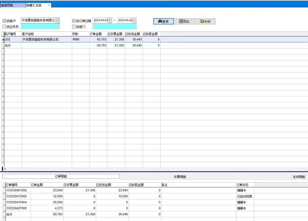 點(diǎn)晴模切ERP系統(tǒng):銷售匯總表