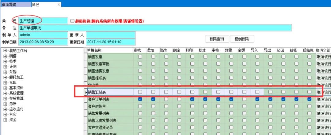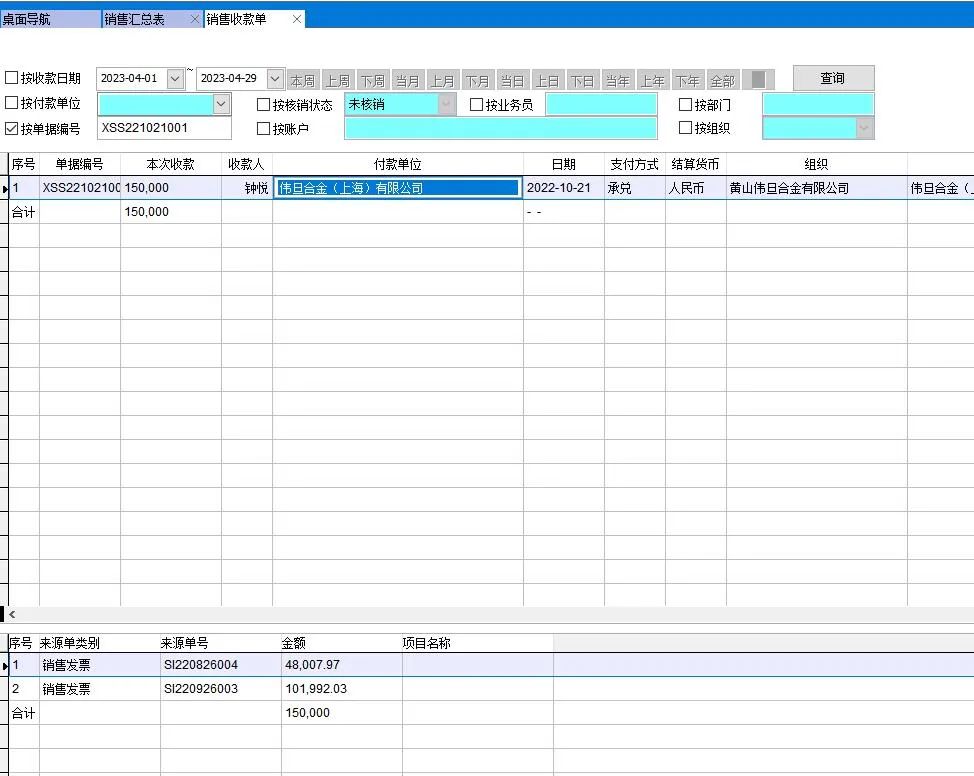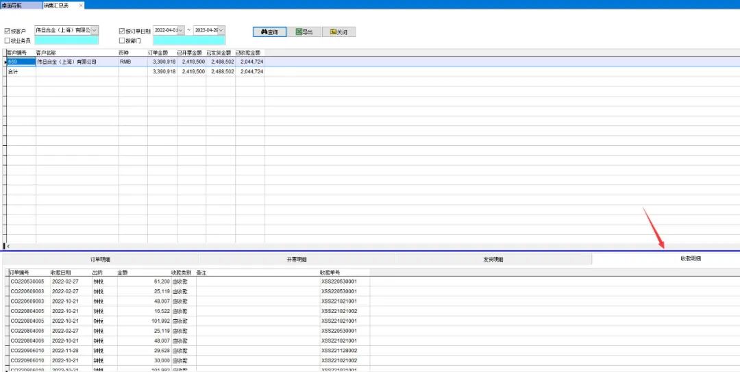 打開(kāi)路徑:【主菜單】->【銷售】-> 【報(bào)表】->【銷售匯總表】 銷售匯總表是綜合反映一段時(shí)間內(nèi)銷售訂單的執(zhí)行情況,包括訂單情況、開(kāi)票情況、已發(fā)貨情況、已收款情況。 銷售匯總表上半部分是某客戶總的訂單金額、已開(kāi)票金額、已發(fā)貨金額、已收款金額,金額都是含稅金額。每個(gè)客戶一行記錄。下半部分是顯示該客戶所有銷售訂單、銷售發(fā)票、銷售發(fā)貨單、銷售收款單 按訂單日期查詢 銷售匯總表上的按訂單日期查詢的訂單日期是指客戶訂單的單據(jù)日期,客戶訂單上有兩個(gè)重要的日期,單據(jù)日期和制單日期。默認(rèn)情況下單據(jù)日期就是制單日期,但是單據(jù)日期是可以手工修改的,比如今日是2號(hào),補(bǔ)做一張昨天的客戶訂單,那么單據(jù)日期就是1號(hào),而制單日期就是2號(hào)。單據(jù)日期是客戶訂單實(shí)際發(fā)生的日期,制單日期是在ERP系統(tǒng)中錄入客戶訂單時(shí)的日期。 訂單明細(xì) 顯示該客戶這段時(shí)間內(nèi)的所有訂單執(zhí)行情況,一個(gè)訂單一行記錄,包括訂單金額、開(kāi)票金額、發(fā)貨金額、收款金額 發(fā)票明細(xì) 發(fā)貨明細(xì) 收款明細(xì) 雙擊顯示單據(jù) 在單據(jù)編號(hào)上雙擊可以打開(kāi)該單據(jù),比如下圖的銷售收款單 導(dǎo)出 導(dǎo)出格式可以在導(dǎo)出布局中設(shè)置 權(quán)限 1、通過(guò)角色限制用戶訪問(wèn)銷售匯總表,如下圖,張三是生產(chǎn)經(jīng)理,他沒(méi)有權(quán)限打開(kāi)銷售匯總表 2、業(yè)務(wù)員有權(quán)限查詢銷售匯總表,但是只能查看本自己客戶的數(shù)據(jù) 客戶資料表中指定該客戶是哪個(gè)業(yè)務(wù)員的 業(yè)務(wù)員設(shè)置中指定該業(yè)務(wù)員只能查看本人客戶數(shù)據(jù) 總結(jié):銷售匯總表是銷售業(yè)務(wù)的匯總明細(xì)表,既能看到匯總訂單金額、收款金額、發(fā)貨金額、開(kāi)票金額,也能看到訂單明細(xì)、收款明細(xì)、發(fā)貨明細(xì)、開(kāi)票明細(xì),適合企業(yè)管理者動(dòng)態(tài)了解企業(yè)經(jīng)營(yíng)狀況。 點(diǎn)晴模切ERP更多信息:http://moqie.clicksun.cn,聯(lián)系電話:4001861886 該文章在 2024/7/29 17:59:29 編輯過(guò) |