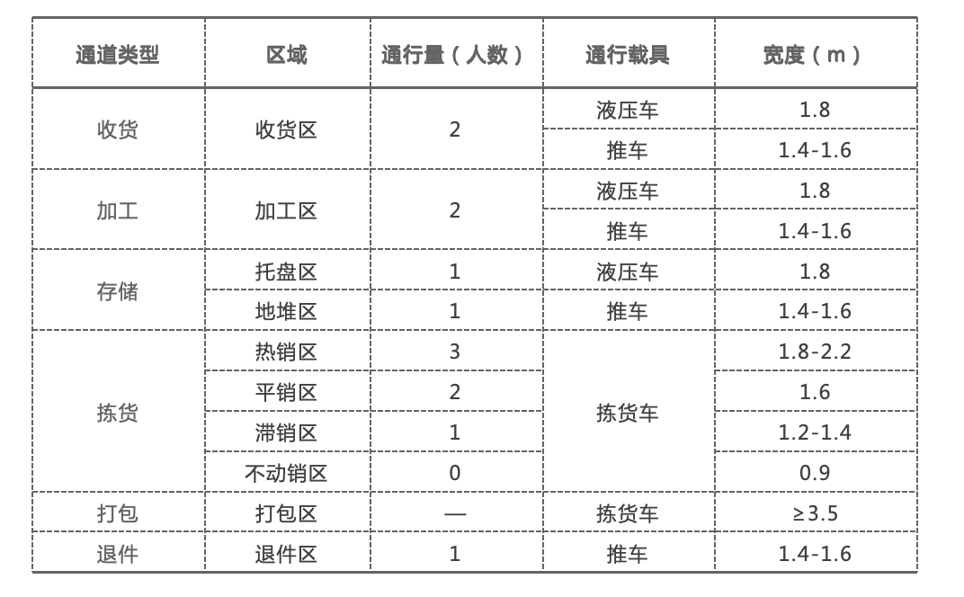 倉庫通道設(shè)計跟庫位設(shè)計有同樣的原理,切忌為了美觀將所有通道大小設(shè)置的整齊劃一,這種通道是中看不中用的。倉庫通道在設(shè)置過程中需要考慮以下4個因素: 常見的通道類型及參考數(shù)據(jù)如下表所示: 這里需要特別提醒倉庫管理者在設(shè)計通道的時候,尤其要注意揀貨通道的設(shè)計朝向,經(jīng)過數(shù)據(jù)測算,揀貨通道垂直于打包區(qū)為最佳通道朝向。 綜上所述,好的倉庫布局可以總結(jié)為以下4句話: 該文章在 2024/8/2 18:11:13 編輯過 |