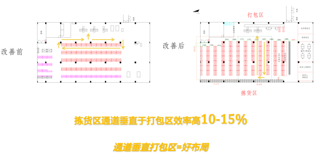 做了這么多年的倉庫工作,你知道在倉庫工作中,哪一項工作最耗時嗎?如果你還不清楚,請繼續(xù)往下看。 有一項數(shù)據(jù)統(tǒng)計表明,如果把倉庫的總工作量當(dāng)做100%的話,那么倉庫各項工作耗時占比如下。 如上的扇形圖可以看出,“揀貨”這項工作占據(jù)了倉庫工作中一半以上的工作時間,如何優(yōu)化揀貨環(huán)節(jié),對提高倉庫效率有著關(guān)鍵性作用。 如果將“揀貨”這項工作進一步拆解的話,移動搬運工作占比55%,尋找商品占比15%,拿取占比10%,其他工作占比20%。 綜上所述,“揀貨”占倉庫工作的大頭,而“移動搬運”又占揀貨工作的大頭,為了提高倉庫效率,就不得不考慮一個非常重要的事情:倉庫布局。 越來越多的電商老板也意識到倉庫布局的重要性,給大家整理了一份10年工作經(jīng)驗的倉庫經(jīng)理在倉庫布局方面的經(jīng)驗總結(jié),認(rèn)真看完一定會有不一樣的收獲。