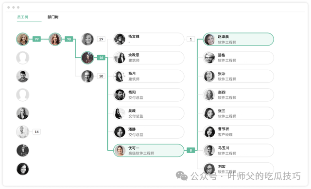 3、靈活的工作排班 Zoho People能快速安排員工的輪班表,讓管理者和員工可以將更多精力放在重要事務(wù)上。系統(tǒng)還支持自定義班次,以適應(yīng)不同部門和團(tuán)隊(duì)的具體需求。 4、清晰展示組織架構(gòu) 能夠提供可視化的界面,清晰地展示清晰地展示企業(yè)機(jī)構(gòu)的員工報(bào)告結(jié)構(gòu)和組織機(jī)構(gòu)層次結(jié)構(gòu),指導(dǎo)員工與合適的人員聯(lián)系。無論該名員工屬于哪個(gè)部門,都可以十分方便地為工作找到合適的人選。