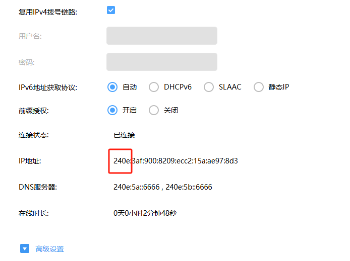好處: 1. 地址空間更大:IPv6 的地址空間比 IPv4 更大,可以提供更多的 IP 地址,解決了 IPv4 地址枯竭的問(wèn)題。 2. 擁有公網(wǎng)的IP地址:IPv6 支持更快的數(shù)據(jù)傳輸速度和更低的延遲,而且,有了公網(wǎng)的IPv6地址,可以配置在我們的NAS服務(wù)器上,這樣你在任何地方都可以訪問(wèn)到我們的文件了。