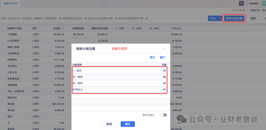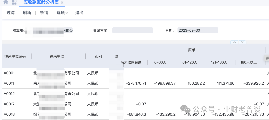 常見(jiàn)的ERP都有賬齡統(tǒng)計(jì)功能,可以自動(dòng)計(jì)算出賬齡,如金蝶的星空、星辰,用友的BIP,還支持賬齡分組,可直接查詢或?qū)С?,如下圖:壞賬準(zhǔn)備計(jì)提