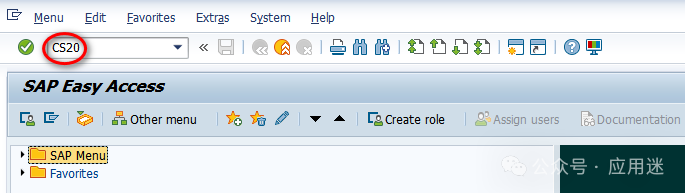 使用cs20事務(wù)碼即可。在SAP起始頁(yè)按下ctrl + /快捷鍵定位到事務(wù)碼運(yùn)行框,輸入cs20,按下回車鍵。