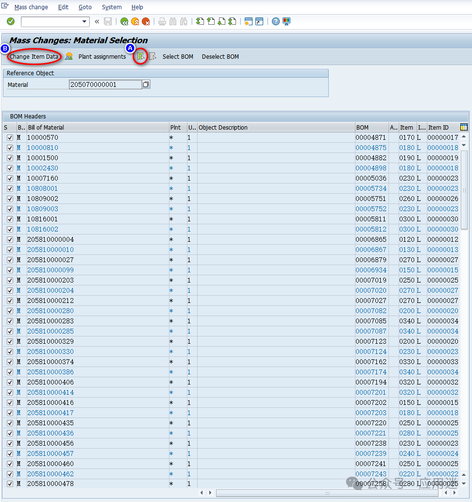 一個(gè)工廠或者多個(gè)工廠的所有包含A組件物料的BOM需要將組件物料A批量替換成B,請(qǐng)問(wèn)如何處理?