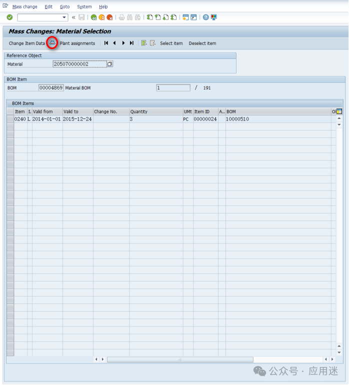 如果顯示下圖界面,就需要點(diǎn)擊上面的帽子圖標(biāo),然后全選BOM,點(diǎn)擊Change Item Data。為什么會(huì)顯示下圖界面,而不是顯示所有查找到的BOM?歡迎屏幕前的你留言討論。