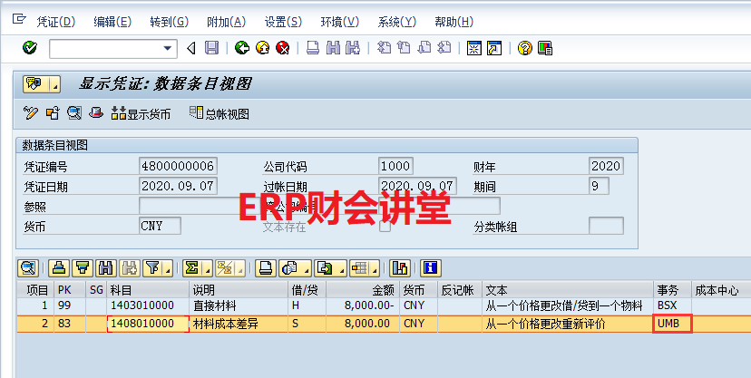 大家有沒(méi)有遇見(jiàn)這種情況,MM01創(chuàng)建物料主數(shù)據(jù)之后,發(fā)現(xiàn)價(jià)格錯(cuò)了,想要更改,但是MM02進(jìn)去價(jià)格卻是灰色的,更改不了,根本改不了! 別著急,雖然MM02不能更改價(jià)格,但是我們可以通過(guò)MR21更改物料價(jià)格。 本文介紹MR21更改物料價(jià)格,菜單路徑如下。 MR21更改價(jià)格之前,MM03查看物料1010000043的計(jì)價(jià)方式為移動(dòng)平均價(jià),價(jià)格為410.00,存貨總價(jià)值為328,000.00 。 接下來(lái),MR21將物料價(jià)格更改為400.00, 輸入更改描述后,回車進(jìn)入到價(jià)格更改界面, 輸入物料號(hào)、新價(jià)格后,保存即可。說(shuō)明:此界面中,可以一次更改多個(gè)物料的價(jià)格。完成更改后,MM03再次查看物料價(jià)格如下, 物料價(jià)格為400.00,存貨價(jià)價(jià)值為320,000.00,相對(duì)于更改之前減少了8,000.00,這部分價(jià)值去哪兒了呢? CKM3查看物料的價(jià)格歷史記錄如下, 雙擊查看價(jià)格更改憑證如下, 點(diǎn)擊“會(huì)計(jì)憑證”查看價(jià)格變更對(duì)應(yīng)的財(cái)務(wù)憑證如下, 憑證分錄為“借:材料成本差異;貸:直接材料”,存貨價(jià)值減少,對(duì)方科目為材料成本差異。事實(shí)上,對(duì)方科目是后臺(tái)配置的,也可以直接配置為損益類科目。 一般情況下,V價(jià)的物料價(jià)格實(shí)時(shí)更新,無(wú)需MR21進(jìn)行調(diào)整(除非要人為調(diào)整庫(kù)存價(jià)值)。對(duì)于S價(jià)的物料,當(dāng)差異較大時(shí),可以通過(guò)MR21調(diào)整價(jià)格。如果S價(jià)的物料存在標(biāo)準(zhǔn)成本估算(半成品/產(chǎn)成品),則不允許通過(guò)MR21更改價(jià)格。 對(duì)物料3010000003更改標(biāo)準(zhǔn)價(jià)格時(shí),提示如下信息。 提醒:工廠啟用Material Ledger之前,可以隨時(shí)通過(guò)MR21更改物料價(jià)格。啟用ML之后,對(duì)于ECC版本,S價(jià)物料一個(gè)月只能更改一次標(biāo)準(zhǔn)價(jià),一旦新的價(jià)格生效后,當(dāng)前期間就不允許再次更改價(jià)格。 點(diǎn)晴模切ERP更多信息:http://moqie.clicksun.cn,聯(lián)系電話:4001861886 該文章在 2024/9/10 11:42:18 編輯過(guò) |