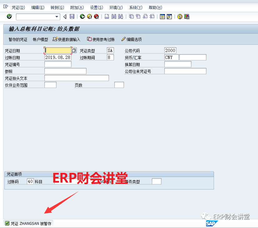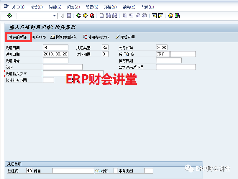 在有的情況下,會(huì)計(jì)憑證的分錄比較多,可能是20行,30行。當(dāng)錄入很多憑證行后再重新錄入總是一件讓人郁悶的事情,此時(shí)SAP的憑證暫存功能就顯得很重要了。當(dāng)然了,憑證暫存只是一個(gè)小技巧,錄入憑證還有很多知識(shí)點(diǎn)和細(xì)節(jié)需要掌握。