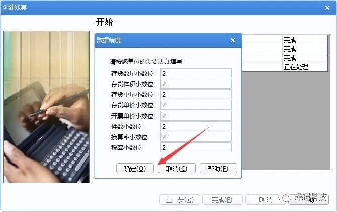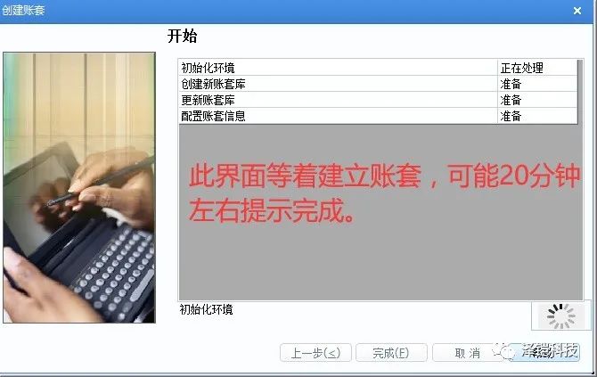 點(diǎn)擊完成,開始創(chuàng)建賬套 。