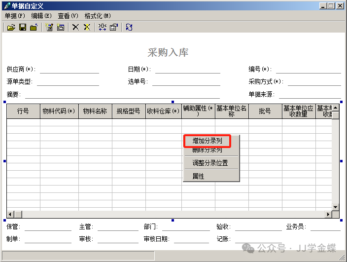 問題描述: KIS專業(yè)版的采購入庫單中標準字段沒有含稅單價和價稅合計,企業(yè)實際管理中部分客戶需要在采購入庫單上增加含稅單價和價稅合計,方便實際的業(yè)務管理。