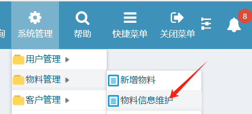 操作步驟:系統(tǒng)管理-物料管理-物料信息維護(hù):