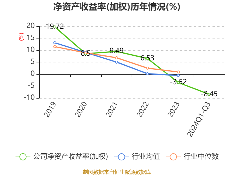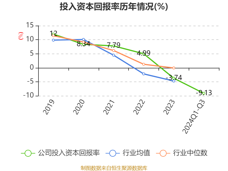 盈利能力方面, 2024年前三季度公司加權平均凈資產收益率為-8.45%,同比下降6.16個百分點。公司2024年前三季度投入資本回報率為-9.13%,較上年同期下降6.06個百分點。