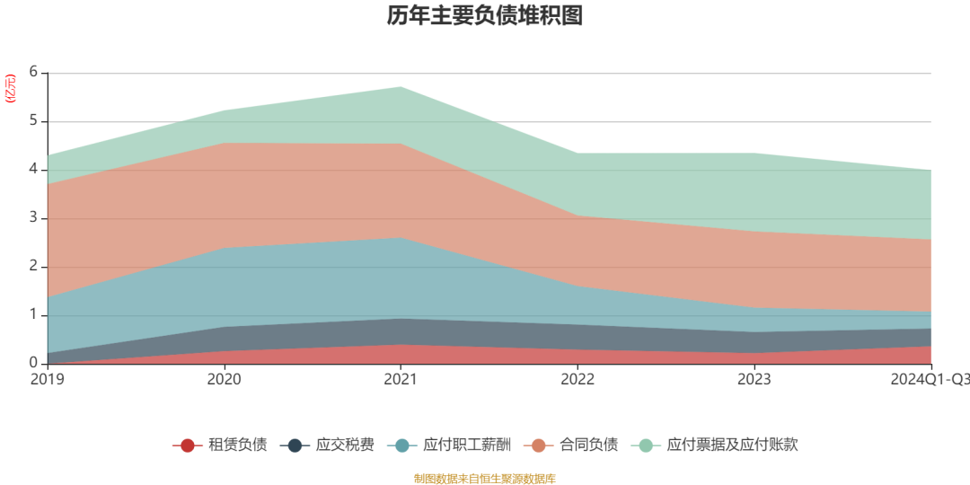 負債重大變化方面,截至2024年三季度末,公司租賃負債較上年末增加64.74%,占公司總資產比重上升1.03個百分點;合同負債較上年末減少5.31%,占公司總資產比重上升0.72個百分點;應付職工薪酬較上年末減少30.59%,占公司總資產比重下降0.54個百分點;應付票據及應付賬款較上年末減少11.48%,占公司總資產比重上升0.13個百分點。