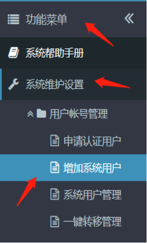 1. 登錄系統(tǒng)后,直接在OA系統(tǒng)上點(diǎn)擊設(shè)置 ![]() 2. 在左側(cè)的功能菜單下的”系統(tǒng)維護(hù)設(shè)置-->用戶帳號(hào)管理-->增加系統(tǒng)用戶”,點(diǎn)擊進(jìn)入。
