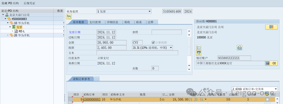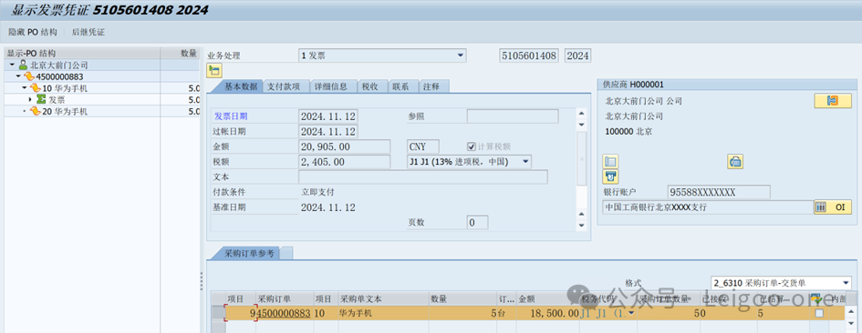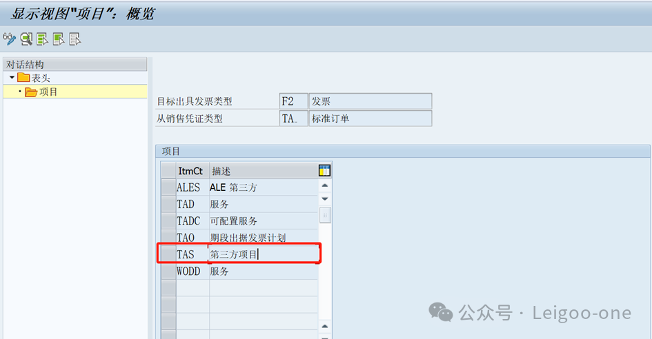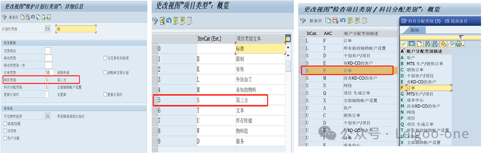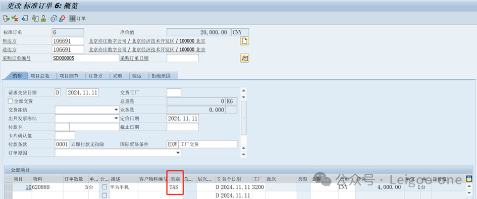 注意:這里“移動類型”為空的話,就表示不需要發(fā)貨過賬,如下: 實物流的設(shè)置選項,如下: 6、維護開票憑證的復(fù)制控制 路徑:SPRO-銷售與分銷-出具發(fā)票-開票憑證-維護開票憑證的復(fù)制控制 銷售開票數(shù)量,它是如何帶到發(fā)票憑證的呢?通過配置,決定發(fā)票數(shù)量來自于采購訂單的收貨數(shù)量,還是來自采購訂單的發(fā)票校驗數(shù)量(這兩個數(shù)量在實際業(yè)務(wù)中可能是不一樣的),具體配置如下: 發(fā)票使用默認的F2發(fā)票類型,也可以自己新增一個;TA標(biāo)準(zhǔn)訂單, 雙擊TAS第三方項目, 在SAP的配置中,開票憑證復(fù)制控制中的出具發(fā)票數(shù)量有 “F” 和 “E” 兩個選項,其含義如下 : 選擇 “F”:表示發(fā)票中的數(shù)量參照采購訂單發(fā)票校驗的數(shù)量。在不收貨的第三方銷售場景中,由于沒有實際的收貨環(huán)節(jié),無法以收貨數(shù)量作為開票依據(jù),而采購訂單發(fā)票校驗的數(shù)量是供應(yīng)商提供發(fā)票上的數(shù)量,相對更能反映實際交易的數(shù)量,因此選擇 “F” 更為合適。 選擇 “E”:表示發(fā)票中的數(shù)量參照采購訂單收貨的數(shù)量 。但在不收貨的業(yè)務(wù)場景下,該選項不符合業(yè)務(wù)實際,因為沒有收貨操作,也就不存在收貨數(shù)量。 整個業(yè)務(wù)生成的會計憑證如下: 7、項目類別和賬戶分配類別組合OMG0 項目類別和賬戶分配類別的組合作用?在于確保在采購和財務(wù)管理過程中,能夠準(zhǔn)確地追蹤和管理成本和費用。 采購中的項目類別指憑證的采購方式,如標(biāo)準(zhǔn)、寄售、第三方、轉(zhuǎn)儲等,此項配置不允許新增條目,只可修改外部表示和描述。科目分配類別則是指定記賬方式,除標(biāo)準(zhǔn)采購?fù)?,像服?wù)、訂單、資產(chǎn)等類型的采購都有指定的條目,并且可以新增條目。項目類別與科目分配類別有關(guān)聯(lián)配置,只有在關(guān)聯(lián)配置中有組合,才可在采購憑證中運用。這里的意思也就是,第三方銷售的采購環(huán)節(jié)配置了“采購項目類別+賬戶分配類別”才能過順利記賬。如下圖,意思就是:“采購方式5-S-第三方采購”,記賬到“F-訂單”這個科目分配類別。 科目(賬戶)分配類別的作用主要有: 確定成本歸屬:科目分配類別用于明確采購成本或相關(guān)費用在財務(wù)核算中的歸屬。比如,常見的科目分配類別 “K” 代表成本中心,意味著采購產(chǎn)生的成本將歸集到特定的成本中心,以便準(zhǔn)確核算各部門或項目的費用支出. 關(guān)聯(lián)總賬科目:它與總賬科目存在對應(yīng)關(guān)系,通過科目分配類別及相關(guān)配置,可以確定采購業(yè)務(wù)對應(yīng)的總賬科目,從而實現(xiàn)采購成本、費用等在財務(wù)報表中的準(zhǔn)確記錄和反映。例如,在自動過賬配置OBYC中,根據(jù)科目分配類別、估價修改、一般修改和評估級別等的組合,可以唯一確定總賬科目. 指導(dǎo)采購流程:科目分配類別在采購流程中起著指導(dǎo)作用。它決定了在采購訂單創(chuàng)建、收貨及發(fā)票校驗等環(huán)節(jié)中,系統(tǒng)如何進行會計核算和成本分配。不同的科目分配類別會導(dǎo)致采購業(yè)務(wù)在財務(wù)處理上的差異,進而影響整個業(yè)務(wù)流程的財務(wù)結(jié)果. 控制數(shù)據(jù)輸入:在采購訂單行項目中,科目分配類別還決定了哪些數(shù)據(jù)是必輸項。例如,當(dāng)科目分配類別為 “K” 時,用戶必須輸入相應(yīng)的成本中心和損益類科目,以確保成本能夠準(zhǔn)確地分配到指定的對象上. 支持業(yè)務(wù)分析:通過科目分配類別,企業(yè)可以更好地進行業(yè)務(wù)分析和成本控制。例如,可以按不同的科目分配類別對采購數(shù)據(jù)進行分類匯總和分析,了解各成本中心或項目的采購支出情況,為成本管理和決策提供有力支持。 (三)第三方銷售實例 1、銷售物料維護MM01/MM02/MM03 新建一個物料,項目類別組選擇BANS第三方項目。如圖,生成一個物料編號620889,華為手機;銷售組織數(shù)據(jù)2界面“項目類別組”選擇BANS第三方銷售。 2、客戶物料信息維護VD51/ VD01 創(chuàng)建客戶物料信息記錄VD51(數(shù)據(jù)表是KNMT); 維護客戶銷售范圍,輸入事務(wù)碼VD01/XD01; 3、維護銷售價格VK11 在前臺輸入VK11,在條件類型欄輸入PR00,按回車鍵或點擊”關(guān)鍵字組合”按鈕,選擇第一項“具有審批狀態(tài)的客戶/物料”,維護凈價。 選擇計劃銷售的銷售組織、分銷渠道以及銷售單位,也就是說準(zhǔn)備以什么價格把該物料賣給誰,如圖: 維護銷售產(chǎn)品的銷項稅條件MWST, 4、創(chuàng)建銷售訂單VA01 輸入訂單類型以及銷售組織信息, 輸入采購訂單編號,客戶、物料、訂單數(shù)量、類別(TAS自動帶入)金額。 雙擊行項目,點擊計劃行,計劃行類型自動帶入CS。 第三方銷售的關(guān)鍵點就在這兩個地方,項目類別和計劃行類別,其他的其實都差不多。 保存銷售訂單,標(biāo)準(zhǔn)訂單已保存。自動生成采購申請:VA03;輸入訂單號,執(zhí)行,雙擊行,查看計劃行,生成了采購申請編號10000005。 5、查看采購申請ME53N 輸入事務(wù)碼,找到采購申請編號,如圖所示: 6、維護供應(yīng)商-物料-采購組織間的采購信息記錄ME11 7、采購申請PR轉(zhuǎn)采購訂單PO:ME21N 選擇我的采購申請,在文檔概覽(左窗口)中
