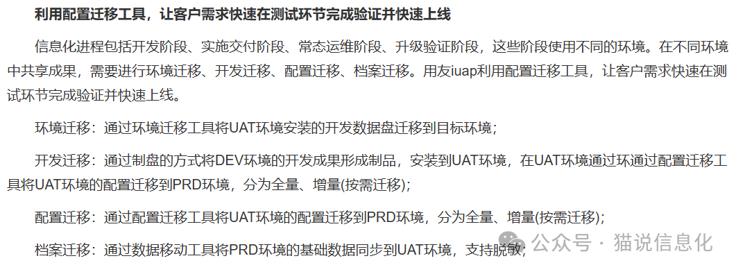 先看很多國產(chǎn)企業(yè)軟件實施時的情況,項目上一般至少有兩套獨立的環(huán)境(兩套獨立部署的軟件),一個是開發(fā)及測試環(huán)境,一個是正式的生產(chǎn)環(huán)境。顧問在第一個環(huán)境中做開發(fā)和配置,然后測試,沒有發(fā)現(xiàn)問題后把代碼放到生產(chǎn)環(huán)境,或者是把配置內(nèi)容從第一個環(huán)境向生產(chǎn)環(huán)境人工照抄一遍,新功能或者變更就上線了。 這兩套環(huán)境在項目初期剛建立時基本是一致的,但隨著項目進(jìn)展,兩個環(huán)境的差異往往越來越大,新的配置和開發(fā)可能與正式生產(chǎn)環(huán)境不匹配,測試結(jié)果常常不靠譜,在第一個環(huán)境中測試通過的內(nèi)容,上線到正式生產(chǎn)環(huán)境后報錯、功能異常,甚至錯誤的修改和刪除數(shù)據(jù)造成嚴(yán)重后果。 有些“講究”的廠商會在上述兩套環(huán)境中間再專設(shè)一個專用的測試環(huán)境(即有了三套獨立的環(huán)境),不同廠商或者項目上的名稱也不太一樣,有的稱為預(yù)發(fā)布環(huán)境(Pre-Production Environment),也有的就稱作測試環(huán)境(Staging Environment),或者兩個概念混淆著用(部分廠商也沒有專業(yè)化、標(biāo)準(zhǔn)化這類內(nèi)容),但總的來說,就是希望這個測試環(huán)境盡量與生產(chǎn)環(huán)境一致,以保障測試的有效性。 配置和開發(fā)在第一個環(huán)境中完成后,也在第一個環(huán)境做最基本的測試,通過后把代碼放到中間這個專用的測試環(huán)境,或者是把新的配置內(nèi)容向測試環(huán)境手工照抄一遍,在測試環(huán)境驗證成功后再放到(再照抄到)正式生產(chǎn)環(huán)境上,通過中間這套測試環(huán)境有效避免了很多低級問題的出現(xiàn)。而維護(hù)這套專用測試環(huán)境也有相應(yīng)的成本,例如需要時不時從生產(chǎn)環(huán)境復(fù)制一套完整的數(shù)據(jù),以保障測試環(huán)境與生產(chǎn)環(huán)境在數(shù)據(jù)庫層面的一致性,對新復(fù)制或新恢復(fù)的數(shù)據(jù)庫,有時還需要在測試環(huán)境刪除生產(chǎn)數(shù)據(jù),只保留配置數(shù)據(jù)、主數(shù)據(jù)、檔案數(shù)據(jù)等內(nèi)容,這樣就有了更大的維護(hù)成本。 上述的維護(hù)成本是一方面,更難受的是人工照抄這件事,很多國產(chǎn)企業(yè)軟件沒有提供相應(yīng)的功能,項目上的多套環(huán)境都是完全獨立部署的軟件,對各種配置項(功能設(shè)置、表單、流程等)在各個系統(tǒng)之間都需要實施顧問手工的導(dǎo)入導(dǎo)出,甚至很多時候就是純粹手工照抄,相當(dāng)于一件事還要重復(fù)做一次,在三套環(huán)境的情況下,一件工作就要重復(fù)做兩次。 過程中,顧問需要把在第一個環(huán)境中所做的每件事都記清楚,這樣才可能復(fù)刻到另外一個環(huán)境中,在復(fù)雜的實施內(nèi)容下,這種復(fù)制非常容易出錯,一是很容易抄錯,還有一種情況是本身在第一個環(huán)境中是正常的內(nèi)容,但未準(zhǔn)確抄到新環(huán)境時出現(xiàn)了新問題,顧問還得一遍遍的檢查或者解決新出現(xiàn)的問題。 上述這種照抄就屬于純粹的工作量,而且還是重復(fù)的工作量,關(guān)鍵是這些工作量要花費(fèi)大量時間,首先加重顧問的工作負(fù)擔(dān),顧問一則要做腦力勞動(調(diào)研需求、思考、設(shè)計、配置、嘗試),腦力勞動之后就是純粹的體力勞動,需要重復(fù)照抄幾次,這個過程還很容易出錯。這部分不必要的重復(fù)工作量最終有兩個結(jié)果。 第一個結(jié)果,企業(yè)軟件開發(fā)或者實施時都是按人天報價,即按工作量報價,例如本來實質(zhì)的工作內(nèi)容是1000人天,但上述重復(fù)抄錯也是實打?qū)嵉墓ぷ髁?,顧問的薪酬是廠商真金白銀的直接支出,這些工作量自然也會包括在項目金額中,于是甲乙方成交的工作量可能是1100人天,這部分意義很低的工作內(nèi)容要由用戶買單。 第二個結(jié)果,在甲乙雙方的價格博弈中,廠商在實質(zhì)工作內(nèi)容下本來可以有一個較好的項目利潤,但因為上述情況,項目金額中不得不包括那些不得不做、浪費(fèi)時間的工作量,重復(fù)照抄似乎是小事,但這部分工作量在項目上往往還很多,占用了顧問大量時間。為上述的低級重復(fù)工作量影響項目利潤其實是非常虧的,加上本公眾號此前談到的多種交付困難,就嚴(yán)重壓縮了利潤空間,廠商就很難盈利,甚至虧損。 多年來經(jīng)常聽到顧問吐槽,很多國產(chǎn)企業(yè)軟件對終端用戶似乎還好,但對實施人員非常不友好,很多工作量用戶無感,但背后是顧問們大量的純手搓工作量,還有這種令人痛苦的重復(fù)照抄工作量。有沒有解決的辦法呢?我簡單介紹一下SAP的相關(guān)機(jī)制。 SAP面向大型企業(yè)的ERP軟件產(chǎn)品(例如:S/4HANA、ECC),實施時至少有三個環(huán)境(按需還可以配置更多環(huán)境):開發(fā)DEV-測試QAS-生產(chǎn)PRD,關(guān)鍵是,這些環(huán)境都是一套軟件上的,相當(dāng)于是在客戶現(xiàn)場部署的一套SAP ERP軟件的三個部分,而不是上述提到的完全獨立的三套軟件。SAP三套環(huán)境的功能定位與本文前邊描述的一樣,實施中,三套環(huán)境的配置參數(shù)等內(nèi)容都基本保持一致,主數(shù)據(jù)和業(yè)務(wù)數(shù)據(jù)在各個環(huán)境是不一樣的。 在DEV環(huán)境