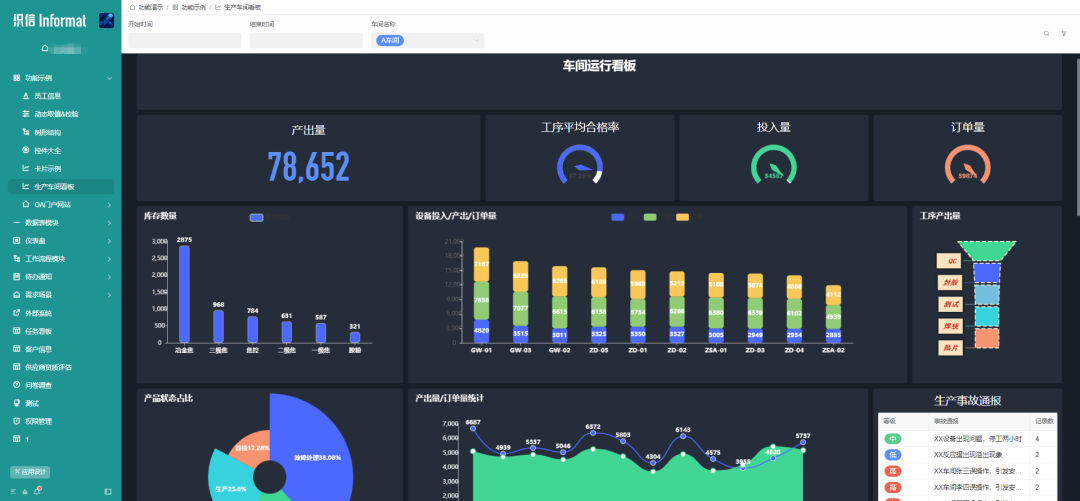 生產(chǎn)管控看板?:對工廠的產(chǎn)品/時間等維度指標(biāo)進行分析作用;