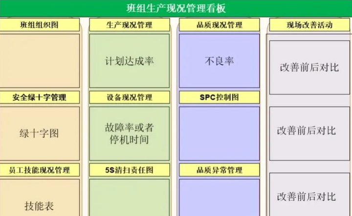 質(zhì)量管控看板?:監(jiān)控產(chǎn)品質(zhì)量和改進措施;