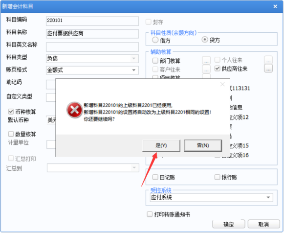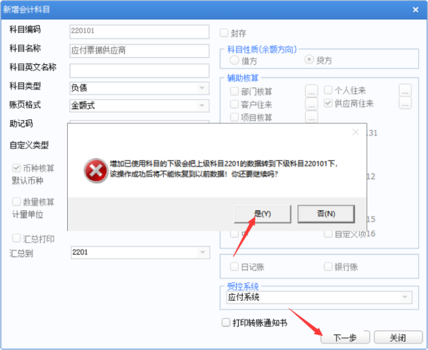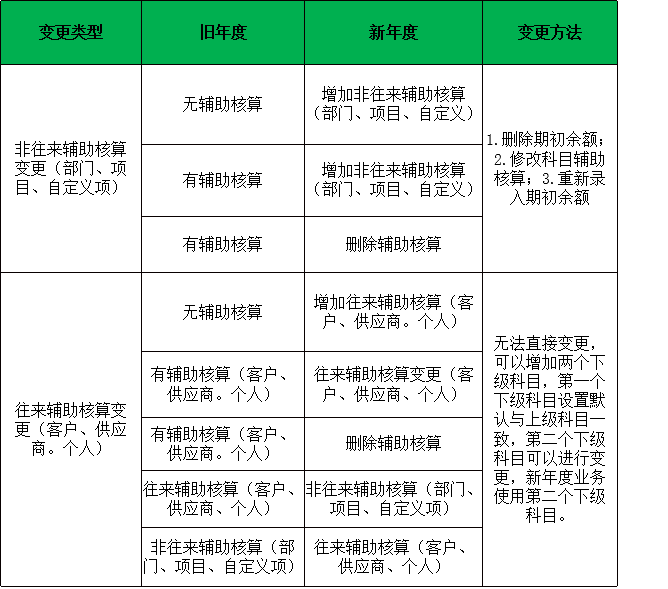 科目涉及往來類輔助核算,無法直接變更,可以增加兩個下級科目,第一個下級科目設(shè)置默認(rèn)與上級科目一致,第二個下級科目可以進行變更,新年度業(yè)務(wù)使用第二個下級科目。