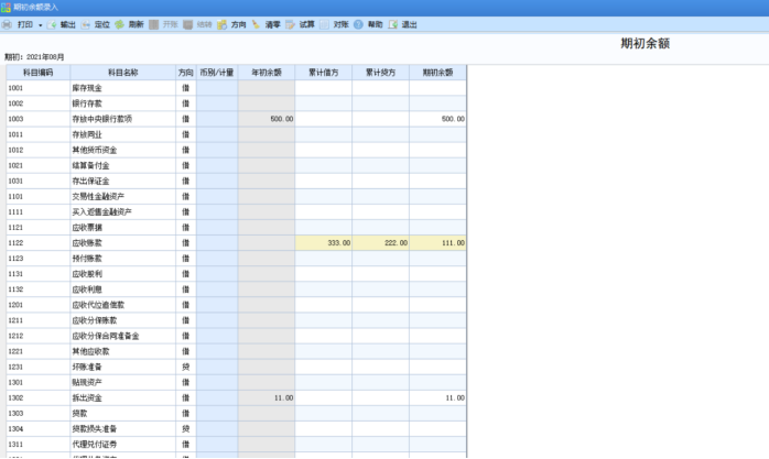 新年度登陸打開期初余額-點擊開賬即可沿用上年會計科目(會計科目與上年保持一致)