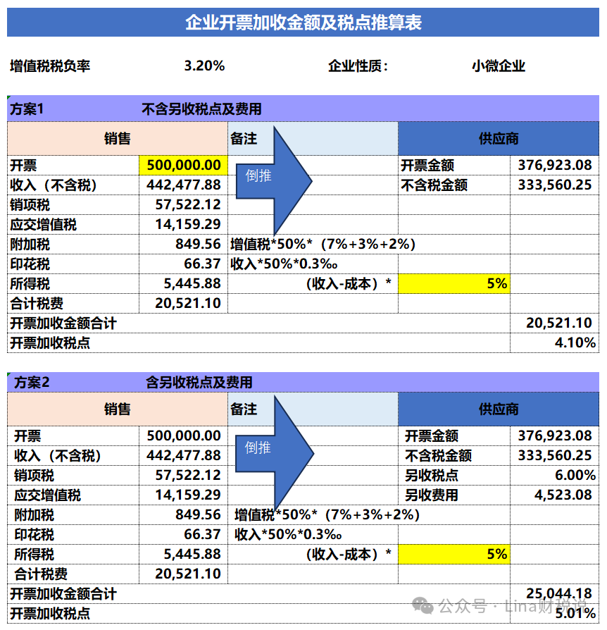 總結:如開票1,102.5元,至少需加7.36%,所以要8個點以上 03 開票加收金額及稅點自動推算大禮包 以上案例,可以清晰地看到不同納稅人類型和稅率下的綜合稅負率,在實操中開票稅點的推算還會受到增值稅稅負率等因素的影響,我給大家做了一個開票加稅點的自動計算表,你直接把數(shù)字填進去就可以算出加多少個稅點,一起來試試看吧~ 閱讀原文:https://mp.weixin.qq.com/s/ae5rC1djwv-rXKbxPX-dlQ 該文章在 2024/12/30 13:05:49 編輯過 |