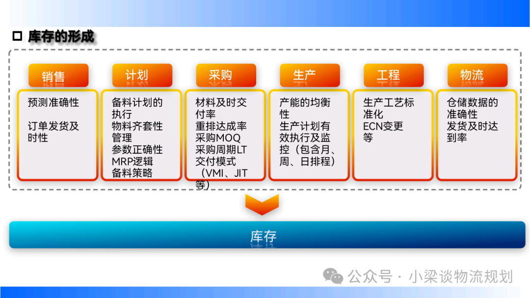 前言: 制造業(yè)企業(yè)對(duì)庫(kù)存管理要避免“三高”,高庫(kù)存,高風(fēng)險(xiǎn),高浪費(fèi),需降低庫(kù)存成本、控制運(yùn)營(yíng)風(fēng)險(xiǎn)、消除生產(chǎn)浪費(fèi)。打通業(yè)務(wù)流程,實(shí)現(xiàn)物流一體化運(yùn)作和管理。物料計(jì)劃與控制要符合 MMOG/LE 要求,包括改進(jìn)物流策略、組織工作、產(chǎn)能和生產(chǎn)規(guī)劃、與顧客和供應(yīng)商接口等。實(shí)物流與信息流合一要保證發(fā)運(yùn)計(jì)劃、穩(wěn)定生產(chǎn)計(jì)劃、狠抓配套計(jì)劃、拉動(dòng)供應(yīng)商到貨計(jì)劃,并進(jìn)行差異管理。一、庫(kù)存類(lèi)別概覽