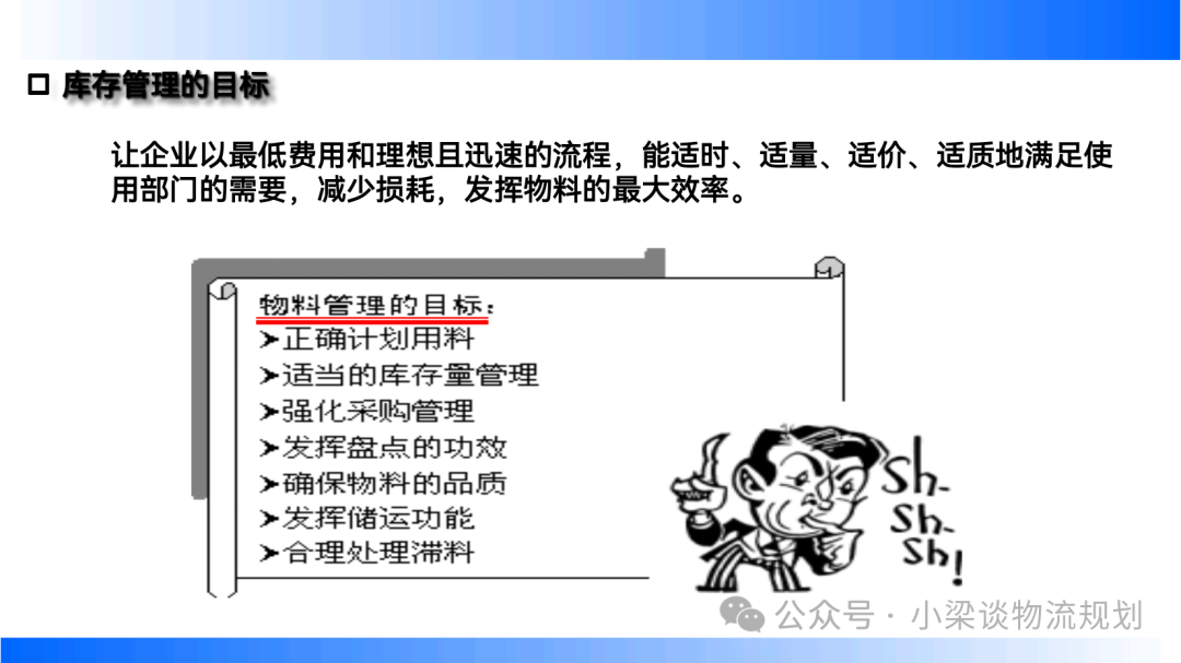 - 庫(kù)存控制:旨在維持合理庫(kù)存水平,以最少的投資與管理費(fèi)用,滿(mǎn)足需求,減少缺貨損失。