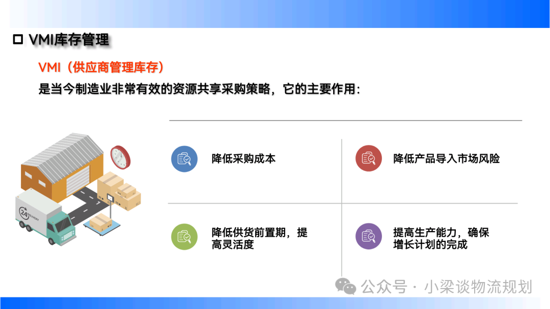 - 安全庫(kù)存:源于銷(xiāo)售與生產(chǎn)數(shù)量、時(shí)間的不確定性,用以彌補(bǔ)供需波動(dòng),為供應(yīng)中斷提供緩沖,減少停工、加班,替代物料與貨物運(yùn)入,并助力銷(xiāo)售增長(zhǎng)。