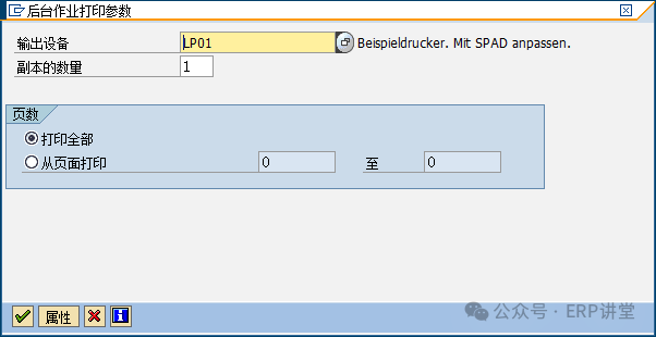 1.1.3.3操作步驟(1)在事物代碼輸入框中填寫(xiě)AJAB,回車(chē): (2)選擇公司代碼、結(jié)束的會(huì)計(jì)年度后,點(diǎn)擊測(cè)試運(yùn)行: (3)點(diǎn)擊“是”,進(jìn)入下列界面: (4)系統(tǒng)提示無(wú)誤后,去掉測(cè)試運(yùn)行,點(diǎn)擊“程序”—“后臺(tái)執(zhí)行”: (5)點(diǎn)擊“程序”—“后臺(tái)執(zhí)行”,進(jìn)入下列界面: (6)選擇輸出設(shè)備,點(diǎn)擊或回車(chē): (7)點(diǎn)擊后,再點(diǎn)擊保存,系統(tǒng)提示信息“已安排后臺(tái)作業(yè)”,系統(tǒng)會(huì)在后臺(tái)執(zhí)行資產(chǎn)余額結(jié)轉(zhuǎn),如圖所示:
