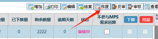 點中狀態(tài)為待審核中的一條單號后,點擊作廢按鈕