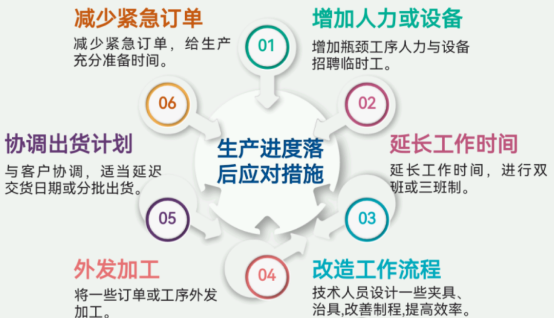 一 夯實(shí)基礎(chǔ) 科學(xué)規(guī)劃生產(chǎn)藍(lán)圖 科學(xué)合理的生產(chǎn)計(jì)劃是掌控生產(chǎn)進(jìn)度的基石,精準(zhǔn)瞄定目標(biāo)與節(jié)點(diǎn)。 以大型設(shè)備制造項(xiàng)目為例,在接到訂單后,企業(yè)需依據(jù)訂單需求、市場(chǎng)動(dòng)態(tài)、資源狀況等因素,制定詳細(xì)的生產(chǎn)計(jì)劃。計(jì)劃不僅要涵蓋產(chǎn)品的整體生產(chǎn)進(jìn)度,還需細(xì)化到各個(gè)部件的生產(chǎn)節(jié)點(diǎn)以及原材料的投入進(jìn)度。同時(shí),設(shè)置階段性的里程碑,如關(guān)鍵部件的完工、樣機(jī)的組裝完成等,以便及時(shí)監(jiān)控項(xiàng)目進(jìn)展。 在制定生產(chǎn)計(jì)劃時(shí),必須全方位考量各種影響因素。 原材料供應(yīng)的穩(wěn)定性首當(dāng)其沖,供應(yīng)商的信譽(yù)、原材料的庫(kù)存情況、運(yùn)輸環(huán)節(jié)的變數(shù)等,都可能讓供應(yīng)鏈 “掉鏈子”。 設(shè)備的故障率也不容忽視,定期維護(hù)保養(yǎng)、及時(shí)更新?lián)Q代,才能保障生產(chǎn)的連續(xù)性。 人員技能熟練度、市場(chǎng)需求波動(dòng)、政策法規(guī)變化等,同樣會(huì)對(duì)生產(chǎn)進(jìn)度產(chǎn)生深遠(yuǎn)影響。因此,在計(jì)劃中預(yù)留一定的彈性空間,以應(yīng)對(duì)突發(fā)狀況,是明智之舉。 ▲ 生產(chǎn)計(jì)劃排產(chǎn)原則 二 全程護(hù)航 精細(xì)把控生產(chǎn)節(jié)奏 生產(chǎn)監(jiān)控事前控制:利用前饋經(jīng)驗(yàn)實(shí)施控制,重點(diǎn)放在事前計(jì)劃與決策。 原材料的按時(shí)進(jìn)場(chǎng)是生產(chǎn)順利啟動(dòng)的先決條件,進(jìn)行原材料進(jìn)場(chǎng) 【卡點(diǎn)】,是生產(chǎn)臨近最直接的事前控制方式。 在電子制造行業(yè),某知名企業(yè)曾因關(guān)鍵芯片供應(yīng)商的供貨延誤,導(dǎo)致生產(chǎn)線停工待料長(zhǎng)達(dá)一周之久,不僅交付延遲,還額外支出了高額的設(shè)備閑置費(fèi)用和加急采購(gòu)成本。 為避免此類(lèi)情況,企業(yè)必須與供應(yīng)商建立緊密的協(xié)同機(jī)制,實(shí)時(shí)共享需求信息,確保供應(yīng)商能依據(jù)生產(chǎn)計(jì)劃精準(zhǔn)排產(chǎn)。同時(shí),依據(jù)過(guò)往供應(yīng)數(shù)據(jù)和市場(chǎng)波動(dòng),設(shè)定合理的安全庫(kù)存,如針對(duì)常用且供應(yīng)周期長(zhǎng)的物料,儲(chǔ)備滿(mǎn)足一周生產(chǎn)用量的庫(kù)存。 此外,借助先進(jìn)的物料跟蹤系統(tǒng),像采用物聯(lián)網(wǎng)技術(shù)的智能倉(cāng)儲(chǔ)管理系統(tǒng),從物料出廠到入庫(kù)全程監(jiān)控,一旦出現(xiàn)延誤,即刻啟動(dòng)應(yīng)急響應(yīng),調(diào)整生產(chǎn)安排或啟用備選供應(yīng)商,保障物料 “卡點(diǎn)” 進(jìn)場(chǎng)。 生產(chǎn)監(jiān)控事中控制:利用反饋信息實(shí)施控制,通過(guò)作業(yè)核算、現(xiàn)場(chǎng)觀測(cè)獲取信息,及時(shí)把生產(chǎn)情況進(jìn)行比較分析,做糾正偏差的控制措施不斷消除由干擾產(chǎn)生的不良后果,確保計(jì)劃實(shí)現(xiàn)。 事中控制活動(dòng)是經(jīng)常性的,時(shí)刻都在進(jìn)行的。 生產(chǎn)線如同生產(chǎn)的【心臟】,其平穩(wěn)律動(dòng)至關(guān)重要,進(jìn)行生產(chǎn)線【律動(dòng)】監(jiān)測(cè),是生產(chǎn)過(guò)程中進(jìn)行事中監(jiān)控的最有效手段。 以汽車(chē)裝配線為例,通過(guò)可視化看板系統(tǒng),各工位的生產(chǎn)進(jìn)度、設(shè)備運(yùn)行狀態(tài)、物料消耗情況一目了然。 一旦某個(gè)工位出現(xiàn)設(shè)備故障,如擰緊螺栓的機(jī)器人卡頓,系統(tǒng)立即發(fā)出警報(bào),維修人員可依據(jù)看板精準(zhǔn)定位,迅速搶修。同時(shí),數(shù)據(jù)采集系統(tǒng)實(shí)時(shí)收集生產(chǎn)數(shù)據(jù),運(yùn)用大數(shù)據(jù)分析技術(shù),提前預(yù)判可能出現(xiàn)的工藝偏差。 若發(fā)現(xiàn)某批次零部件裝配后的檢測(cè)數(shù)據(jù)偏離標(biāo)準(zhǔn)值,及時(shí)回溯生產(chǎn)流程,排查是工人操作失誤還是設(shè)備參數(shù)漂移,快速糾錯(cuò),確保生產(chǎn)線節(jié)奏不亂。 生產(chǎn)監(jiān)控事后控制:利用反饋信息和經(jīng)驗(yàn)進(jìn)行總結(jié)和檢討,控制的重點(diǎn)是今后的生產(chǎn)活動(dòng)。 成品的出廠審核是交付前的最后一道關(guān)卡,進(jìn)行成品【出關(guān)】控制,就是典型生產(chǎn)監(jiān)控事后控制的最后把關(guān)。 食品加工企業(yè)對(duì)此要求嚴(yán)苛,從原材料采購(gòu)源頭便開(kāi)始把控質(zhì)量。生產(chǎn)完成后,依據(jù)國(guó)標(biāo)、企標(biāo)以及客戶(hù)特殊要求,對(duì)成品的外觀、口感、營(yíng)養(yǎng)成分、微生物指標(biāo)等逐一檢驗(yàn)。 以酸奶生產(chǎn)為例,不僅要檢測(cè)其蛋白質(zhì)含量、脂肪含量是否達(dá)標(biāo),還要對(duì)乳酸菌活性、有害微生物數(shù)量嚴(yán)格把關(guān)。 只有所有指標(biāo)合格,產(chǎn)品才能貼上合格標(biāo)簽,進(jìn)入包裝、發(fā)貨環(huán)節(jié),按時(shí)交付到客戶(hù)手中,為整個(gè)生產(chǎn)過(guò)程畫(huà)上完美句號(hào)。 ▲ 生產(chǎn)進(jìn)度落后應(yīng)對(duì)措施