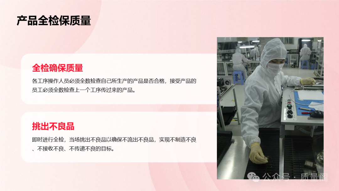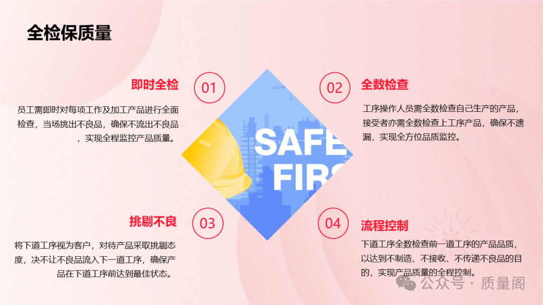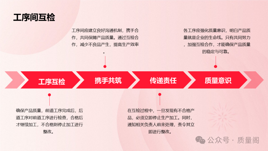 每個(gè)工作崗位的員工都需要對(duì)自己的每一項(xiàng)工作和加工的產(chǎn)品進(jìn)行全檢。這意味著員工需要對(duì)自己生產(chǎn)的產(chǎn)品進(jìn)行全面、細(xì)致的檢查,確保每個(gè)產(chǎn)品都符合質(zhì)量要求。同時(shí),上一個(gè)工序的員工還有權(quán)對(duì)下一個(gè)工序的產(chǎn)品進(jìn)行檢查,以實(shí)現(xiàn)互檢的目的。通過(guò)全檢和互檢的結(jié)合,企業(yè)可以確保產(chǎn)品質(zhì)量在每個(gè)環(huán)節(jié)都得到保障。