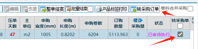 勾上要轉的申購明單內容后,再點擊轉采購單按鈕