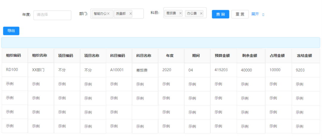 06.預(yù)算余額表 預(yù)算余額表主要用于記錄預(yù)算執(zhí)行的匯總情況,可以直觀地查看預(yù)算余額、占用余額等信息,并為預(yù)算控制服務(wù)提供基礎(chǔ)的余額數(shù)據(jù)支持。