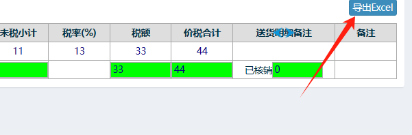 再點導出excel按鈕即可導出當前這張發(fā)票的明細