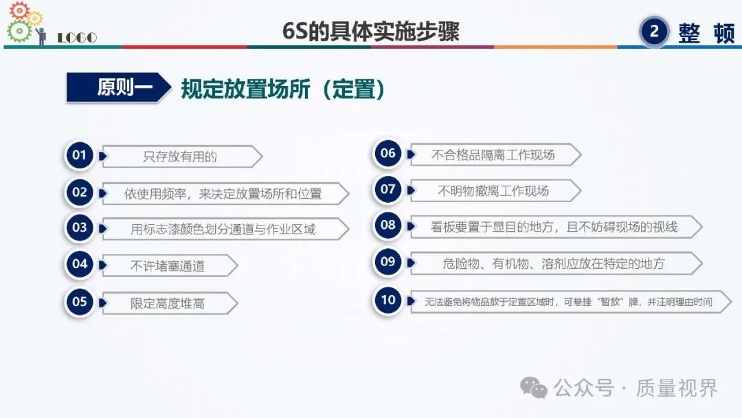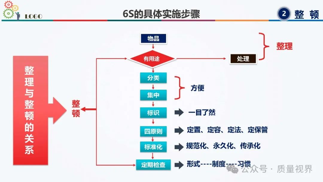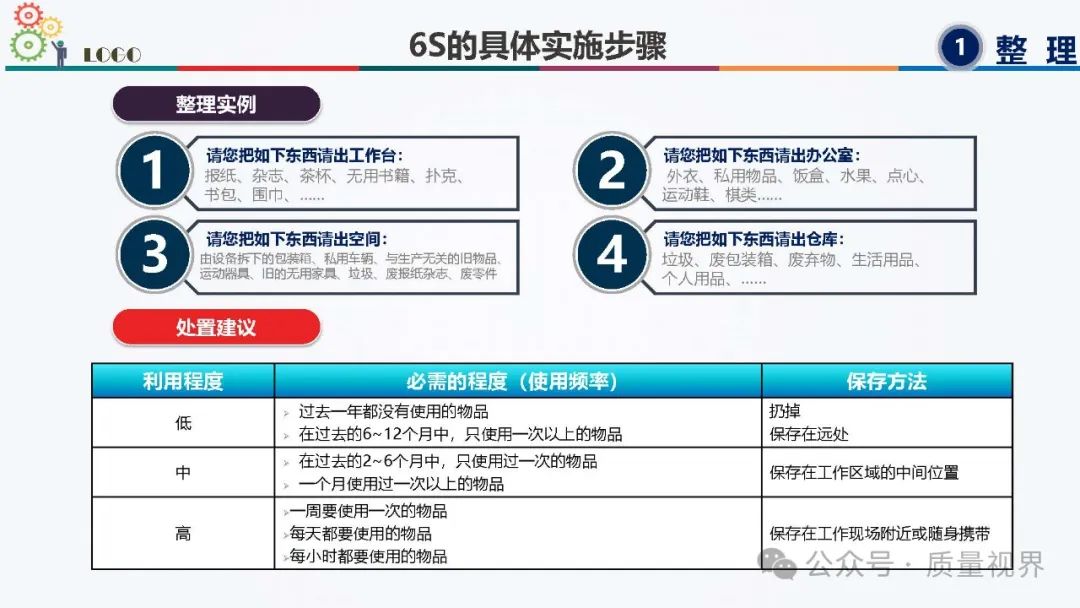 定義:將工作場所的物品區(qū)分為必要和不必要的,清除不必要的物品。全面檢查:對工作場所的所有區(qū)域,包括設備、工具、物料、文件等進行全面檢查。使用頻率判斷:根據物品的使用頻率來決定是否保留,如一年內使用不到一次的物品可考慮清理。建立清理標準:明確什么是必要物品,什么是不必要物品,制定具體的判斷標準。整頓(Seiton)