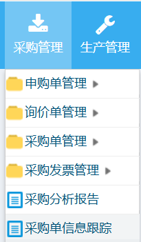 操作步驟:采購管理-采購單信息跟蹤,如下圖所示: