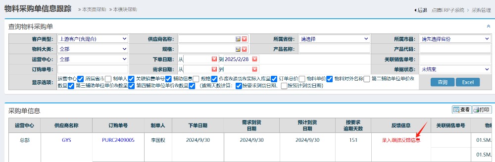 點(diǎn)晴模切ERP采購單信息反饋如何操作