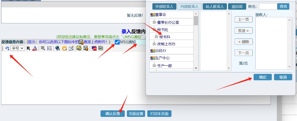 錄入反饋信息,選擇相關(guān)人員,點(diǎn)擊反饋完成操作,如下圖所示: