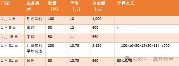 二、月末一次加權(quán)平均法 ??概念 月末一次加權(quán)平均法是按月計(jì)算存貨單位成本,即月底統(tǒng)一計(jì)算當(dāng)月存貨的加權(quán)平均單價(jià),然后用于計(jì)算當(dāng)月的出庫(kù)成本。 ??計(jì)算公式 加權(quán)平均單價(jià)(當(dāng)月)=(期初庫(kù)存總金額+本月采購(gòu)總金額)÷(期初庫(kù)存數(shù)量+本月采購(gòu)數(shù)量) ??適用場(chǎng)景 ?適用于采購(gòu)批次較少、價(jià)格波動(dòng)較大的企業(yè),如重工業(yè)、設(shè)備制造等行業(yè)。 ??舉個(gè)栗子 ![]() ??特點(diǎn):