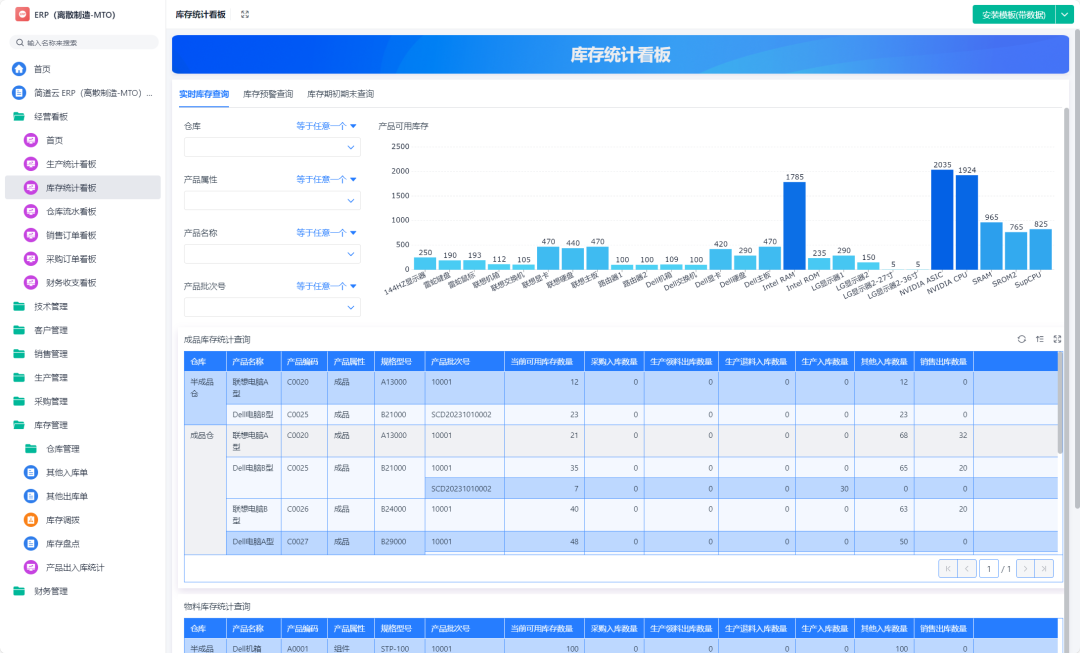 ![]() 4. 實(shí)時(shí)監(jiān)控庫(kù)存,避免庫(kù)存積壓 多級(jí)BOM能夠幫助你精確掌握庫(kù)存情況,確保每種物料的采購(gòu)量和庫(kù)存量在合理范圍內(nèi)。 ERP系統(tǒng)會(huì)實(shí)時(shí)跟蹤庫(kù)存變動(dòng),幫助管理者優(yōu)化庫(kù)存,減少庫(kù)存積壓和呆滯物料。 操作方法:
