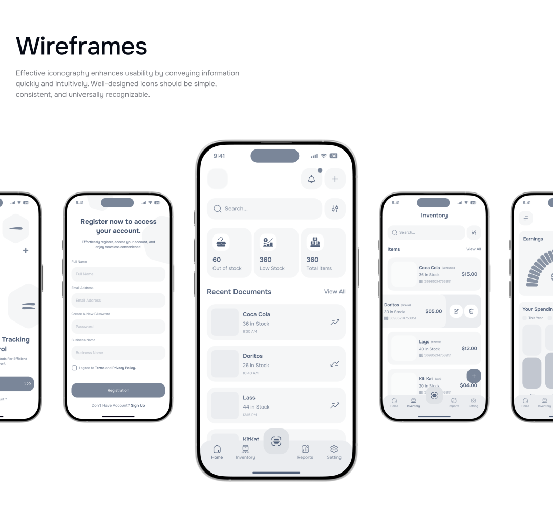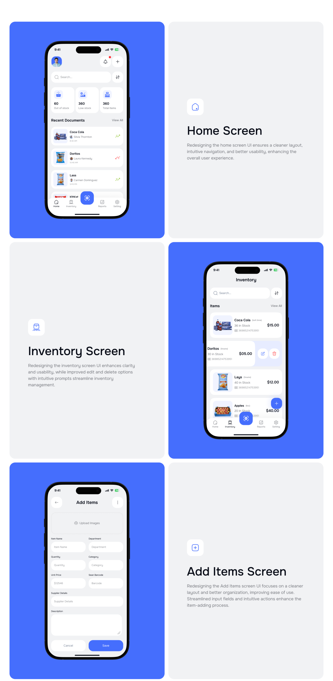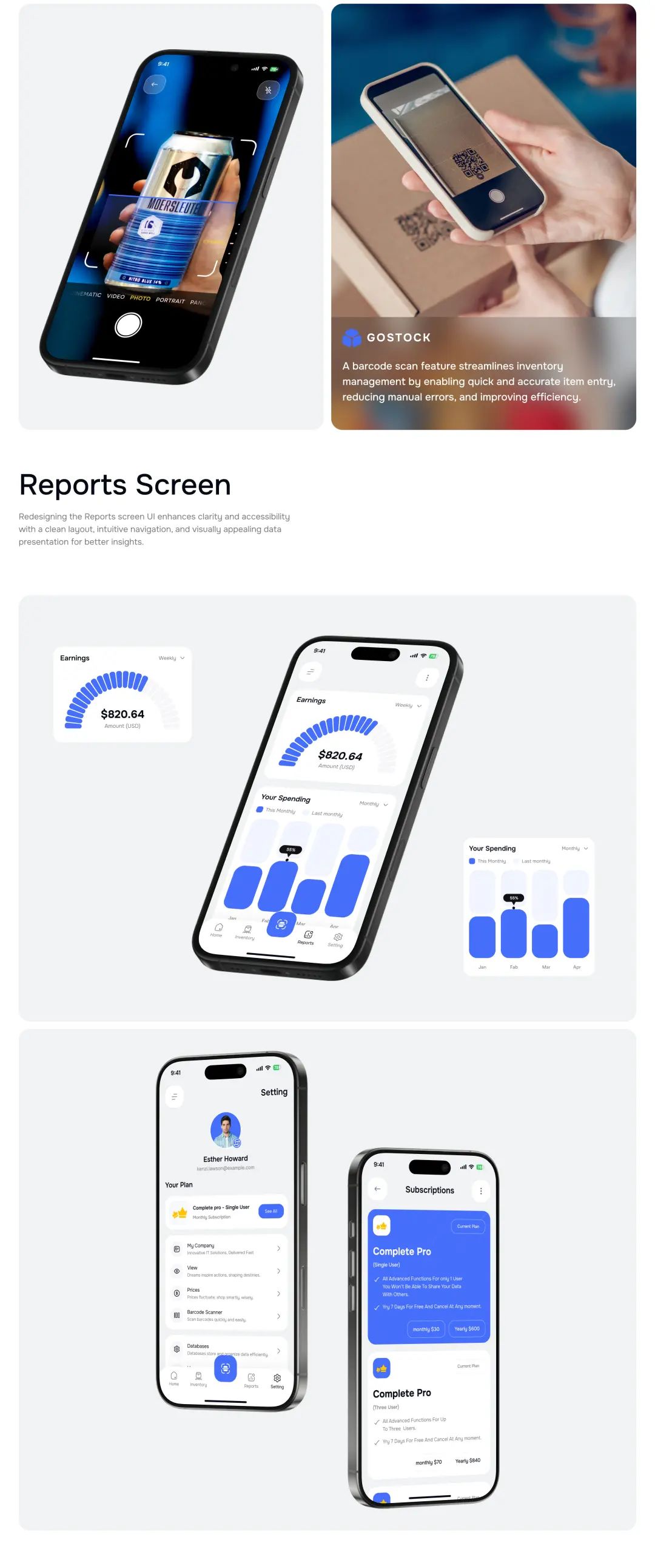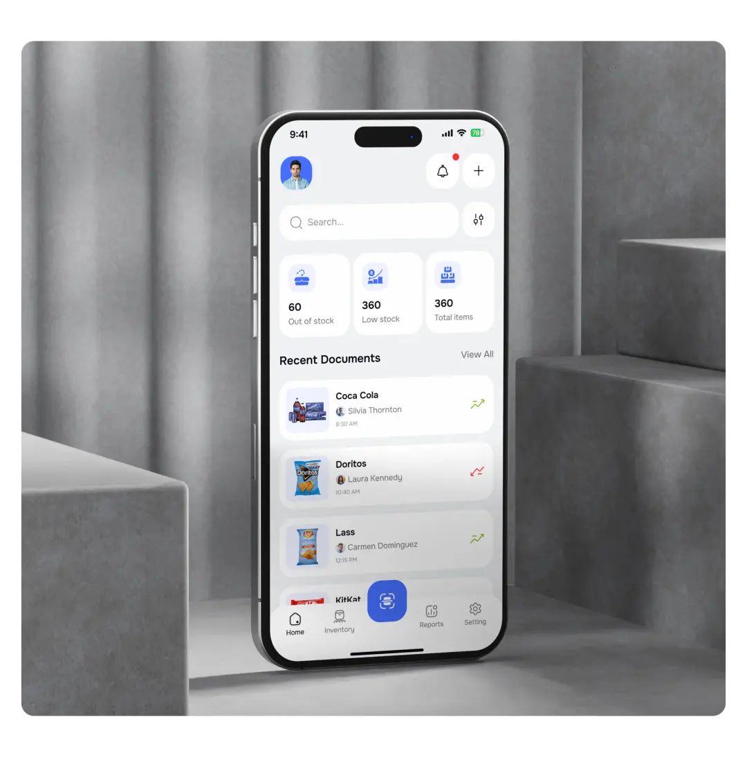 卡片式設計,使內(nèi)容模塊分隔清晰,數(shù)據(jù)展示直觀,如庫存界面清晰顯示庫存數(shù)量、價格和條形碼,便于快速瀏覽和管理。圖標簡潔,采用了線性風格,與整體UI風格匹配。作品地址:https://www.behance.net/gallery/218352145/Inventory-Mobile-App?tracking_source=search_projects_views|app+ui+design&l=0?@以上作品版權歸作者所有,僅作個人參考
