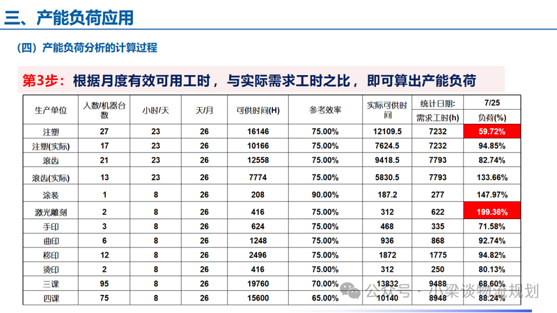 負(fù)荷率 = 訂單需求總量 / 實(shí)際產(chǎn)能 × 100%。