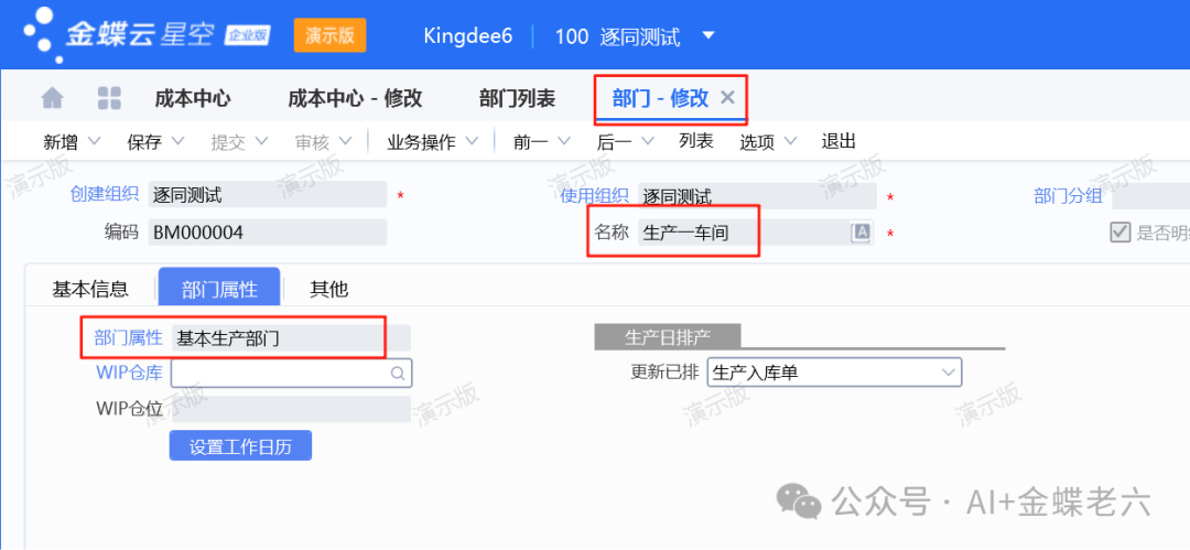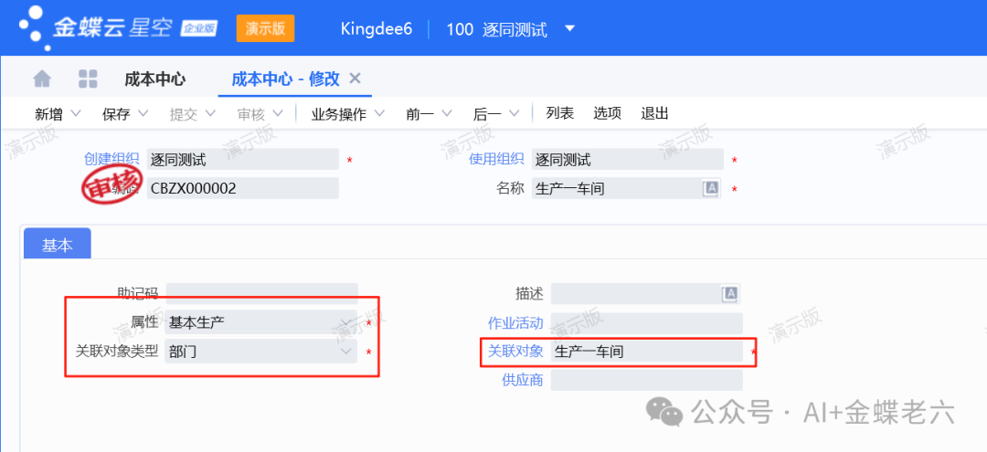 成本中心屬性為基本生產(chǎn),只能關(guān)聯(lián)部門屬性為基本生產(chǎn)部門的部門,如下圖所示: