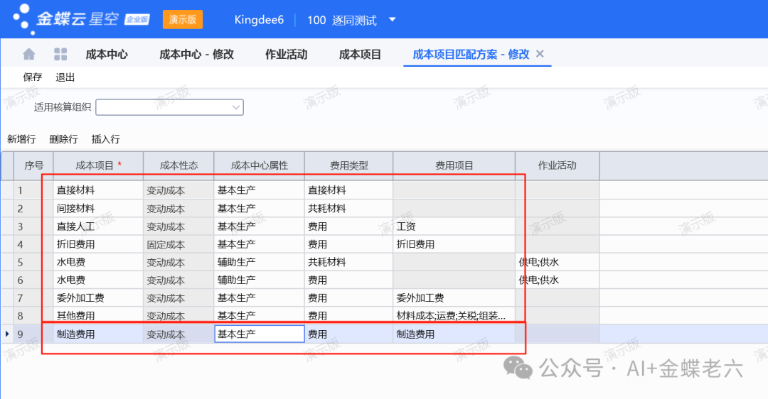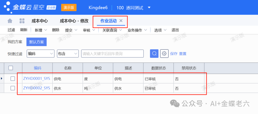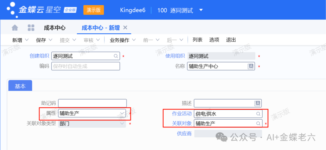 成本中心屬性為輔助生產(chǎn),只能關(guān)聯(lián)部門屬性為輔助生產(chǎn)部門的部門,輔助生產(chǎn)成本中心需要關(guān)聯(lián)對(duì)應(yīng)的作業(yè)活動(dòng)如下圖所示。