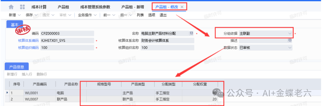產(chǎn)品組中一共有三個(gè)分組依據(jù),分別為主聯(lián)副、等級(jí)、其他,系統(tǒng)常用的是主聯(lián)副產(chǎn)品組。