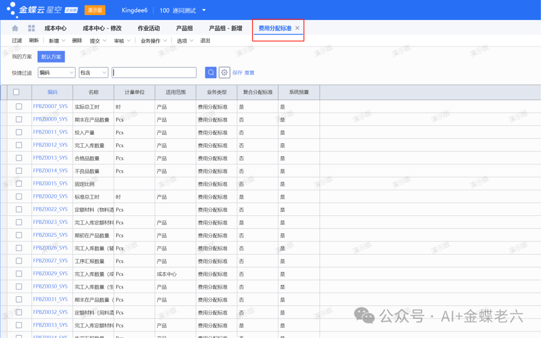 系統(tǒng)預(yù)置了很多費(fèi)用分配標(biāo)準(zhǔn),這邊就是成本分配方面的計(jì)算邏輯,這邊就不細(xì)致展開(kāi),內(nèi)容特別多,大家可以網(wǎng)上進(jìn)行逐個(gè)的學(xué)習(xí)。常用的有工時(shí)、入庫(kù)數(shù)量、約當(dāng)產(chǎn)量等。